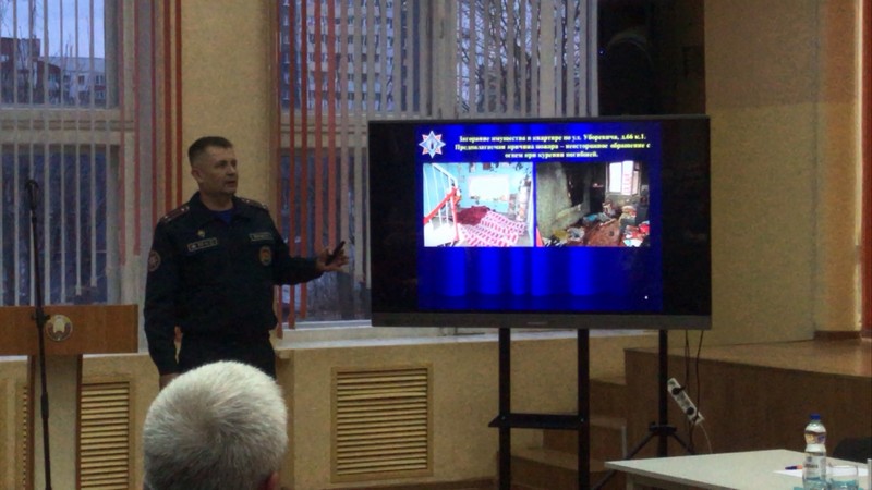 Сергеем Быковым была доведена оперативная обстановка с пожарами и гибелью на них людей. Особое внимание было уделено случаю гибели гражданки, произошедшему 12 марта 2024 года по адресу: улица Уборевича, дом 66, корпус 1. По результатам предварительного расследования установлено, что причиной пожара стало неосторожное обращение с огнем при курении в состоянии алкогольного опьянения погибшей. Заместитель начальника Заводского районного отдела по чрезвычайным ситуациям детально проанализировал обстоятельства трагедии, подчеркнув, что наиболее часто пожары происходят из-за незнания или игнорирования правил пожарной безопасности. Он назвал одни из основных причин возгораний: неосторожное обращение с огнем, неправильное использование электроприборов, неисправность печного оборудования. Сергей Быков призвал присутствующих строго соблюдать меры пожарной безопасности.